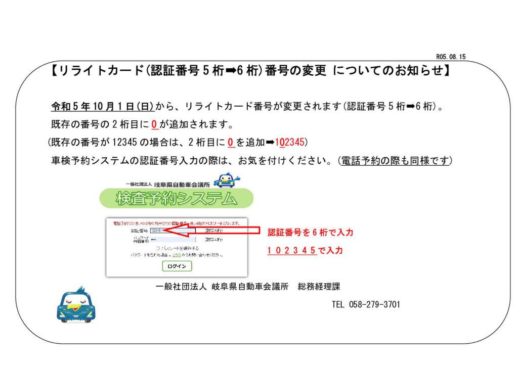 リライトカード番号(認証番号5桁→6桁)番号の変更についてのお知らせ